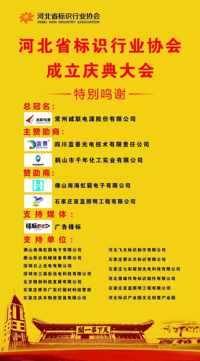 庆典大会开始,由秘书长田言建陈述了协会下半年的工作计划,紧接着由河北标协贾会长与北京标协崔会长进行了[点睛仪式],随后播放了河北标协的宣传片,片中记录了河北标协的成长史和以后的发展愿景,紧接着由北京市标协崔贵森会长代表全国标协致词,并播放了各省标识行业协会对河北标协的祝贺视频,在这里万分感谢各“兄弟”标协对我协会的祝贺!